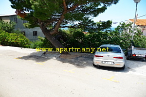 rezervovaném parkovišti poblíž apartmánů.