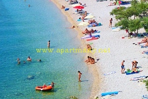 pláž s vhodným přístupem do moře pro děti i dospělé přímo pod apartmány.