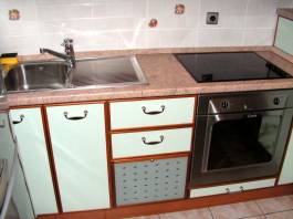 kuchyních je jídelní stůl, židle, lednice s mrazákem, sporák, nádobí, příbory ........