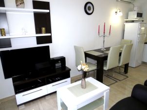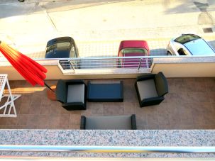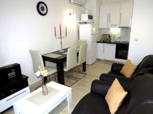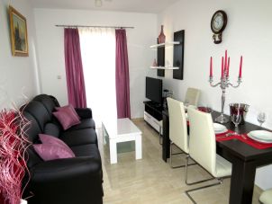osoby, obývací pokoj s rozkládací sedačkou , kuchyní s jídelnou a balkonem s venkovním posezením,