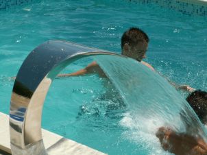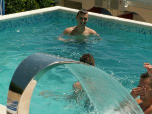 zapuštěn bazén s nočním osvětlením o velikosti 7,5 x 3,5 metru s hloubkou 1,5