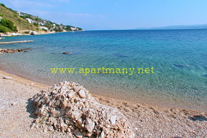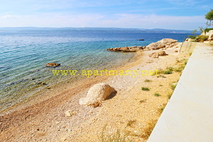 pláž s vhodným přístupem do moře pro děti i dospělé pod apartmány.