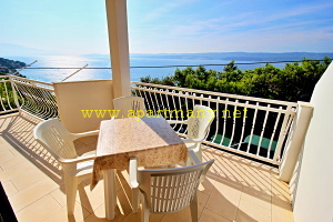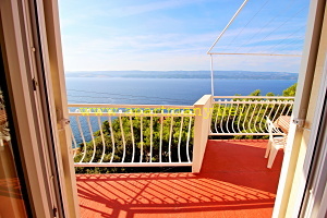 lůžkem, balkonem směrem a výhledem na moře, terasa na sever s pohledem na hory, vybavená kuchyň,