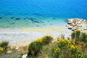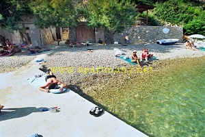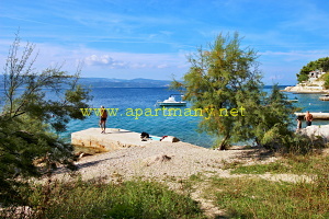 pláž s vhodným přístupem do moře pro děti i dospělé je pod apartmány.