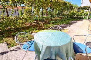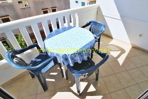 jídelnou, jižní terasa s posezením a částečně omezeným pohledem na moře, koupelna s WC. KLIMATIZACE, TV/sat