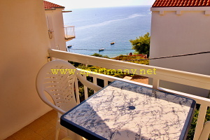 s posezením a pohledem na moře, balkon s výhledem na moře.