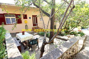 apartmánu také náleží venkovní posezení u domu s přenosným grilem , které je jen pro tento