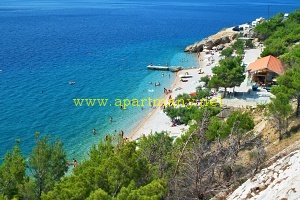 pláž s vhodným přístupem do moře pro děti i dospělé přímo pod apartmány.