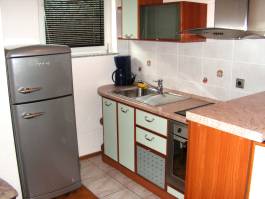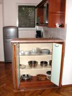 kuchyních je jídelní stůl, židle, lednice s mrazákem, sporák, nádobí, příbory ........