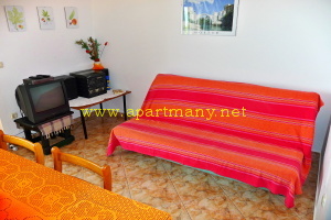 dvojlůžkem a obývací částí s možností přistýlky pro dítě, samostatná vybavená kuchyňka,