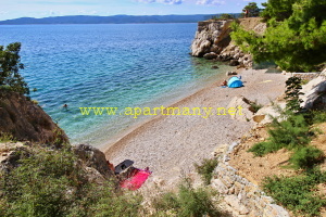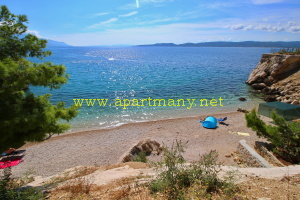 pláž s pozvolným přístupem do moře, vhodným pro děti i dospělé pod apartmány. Na
