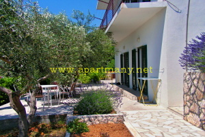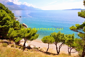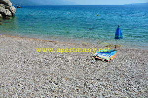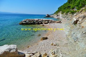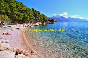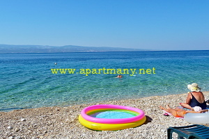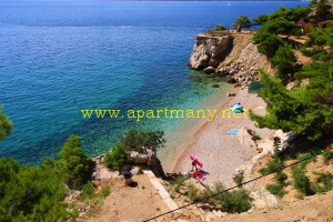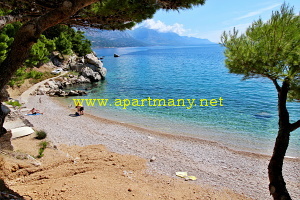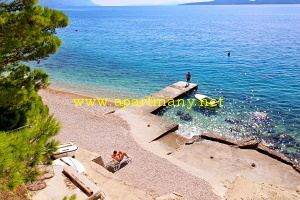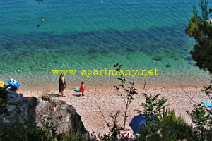pláž s pozvolným, vhodným přístupem do moře pro děti i dospělé přímo pod apartmány,