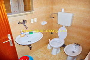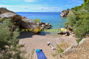 pláž s pozvolným přístupem do moře, vhodným pro děti i dospělé pod apartmány. Na