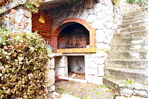 domu je venkovní zděný gril, který je možné používat.