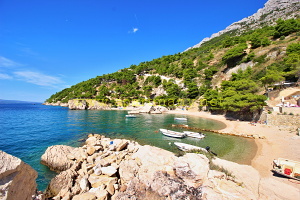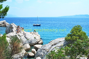 oblázko-písčitých pláží, kde si každý nejde své místo. Ve vesničce