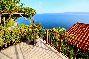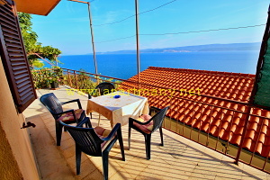 židle, velká terasa s panoramatickým výhledem na moře, koupelna s WC.