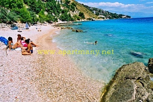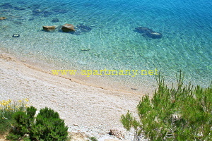 pláž s vhodným přístupem do moře pro děti i dospělé pod apartmány.