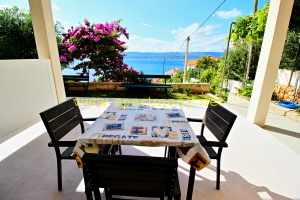 ložnice pro 3 osoby, koupelna a WC, obývací kuchyně kde jsou dvě lůžka, která má vstup na velkou jižní terasu s výhledem na moře. V