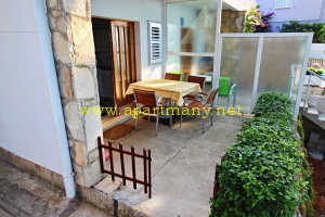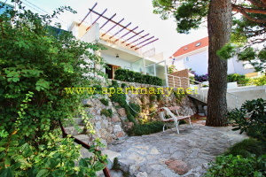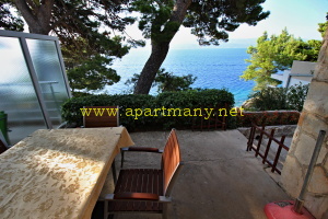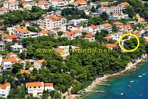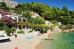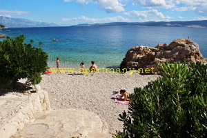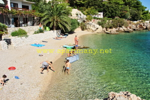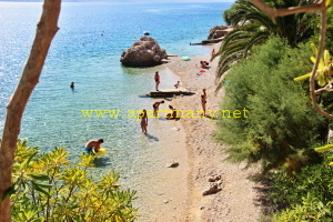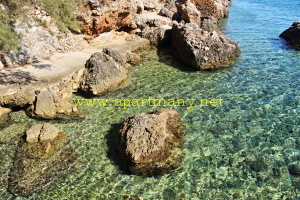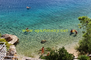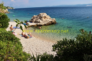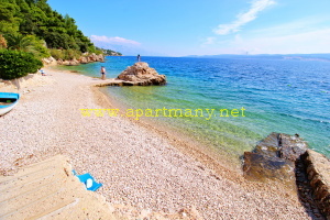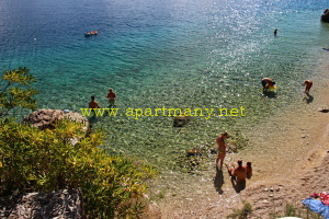 apartmány je skalnaté pobřeží kde je vytvořeno několik vstupů do moře, pláž s pozvolným přístupem do moře pro děti i dospělé