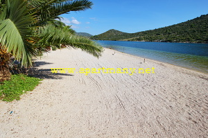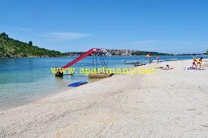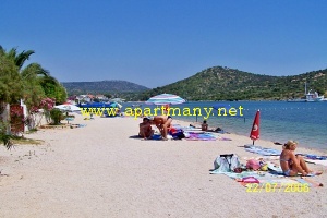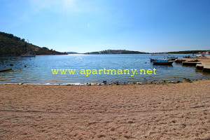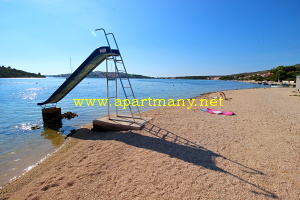 ( hrubší písek, kamínky )s pozvolným přístupem do moře vhodná pro malé děti i dospělé.