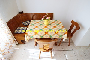 kuchyních je jídelní stůl, židle, lednice s mrazákem, sporák, nádobí, příbory ........