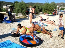 místy kamenitá s pozvolným přístupem do moře vhodná pro děti i dospělé. |
